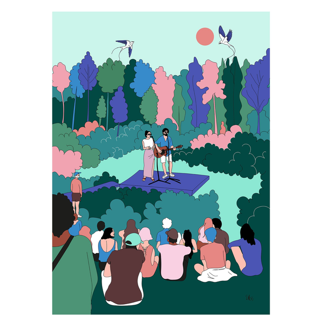Illustration au format A4 (21x29,7 cm) imprimée professionnellement et de façon éco-responsable sur un papier Rive tradition de 250 g/m², à la texture naturelle, non laminée.