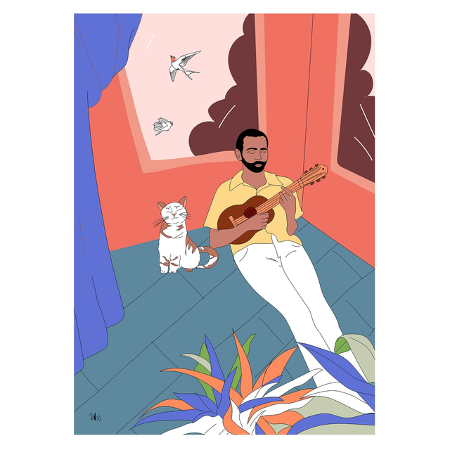 Illustration au format A4 (21x29,7 cm) imprimée professionnellement et de façon éco-responsable sur un papier Rive tradition de 250 g/m², à la texture naturelle, non laminée.